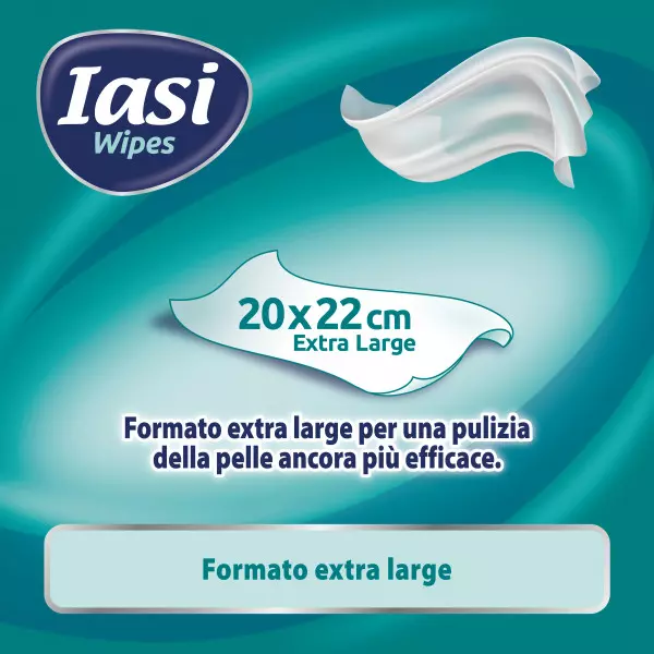 Le salviette detergenti umidificate Iasi Extra-Large sono appositamente studiate per la pelle delicata degli utilizzatori di prodotti per incontinenza. Detergono efficacemente e si prendono cura della pelle degli adulti grazie alla loro formula speciale con glicerina, pantenolo, aloe vera e camomilla. Delicatamente profumate con una fragranza fresca di pulito. Dermatologicamente testate.